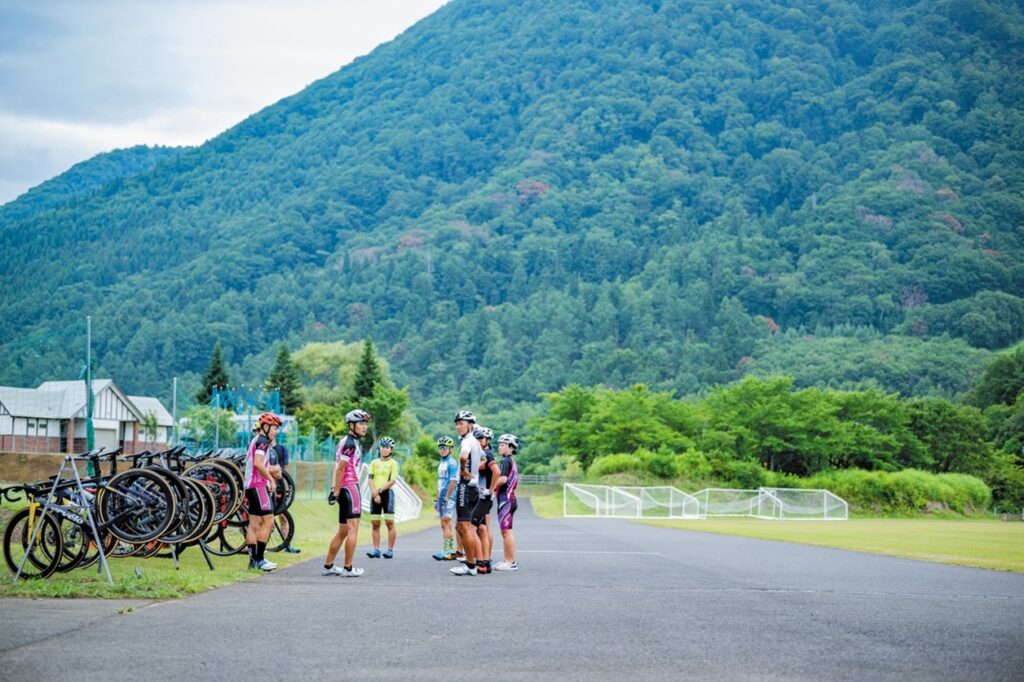 「私も現役だった時に、この木島平クロスカントリー競技場をバイク練習で何度か使わせていただいて。ここは400mと3.4㎞が両方取れる周回コースになっていて、コースのなかにアップダウンもあるんです。チームのなかには足を怪我している選手もいるので、選手によってコースを選んでトレーニングできるところも魅力的ですね」