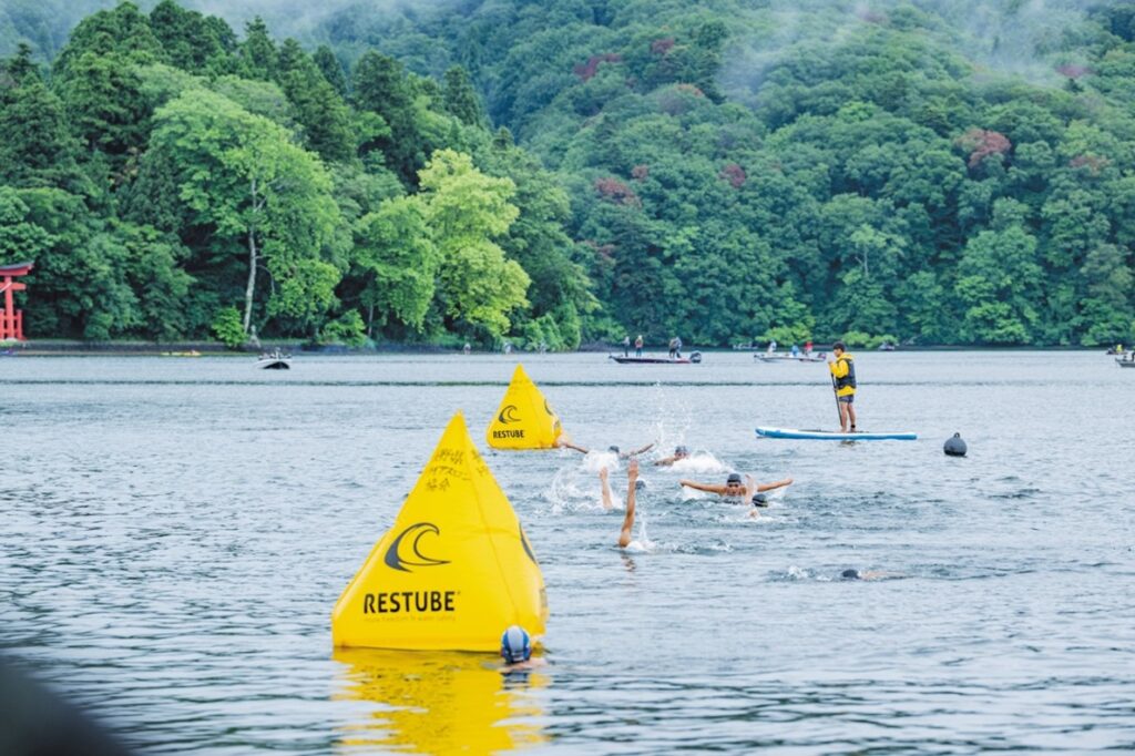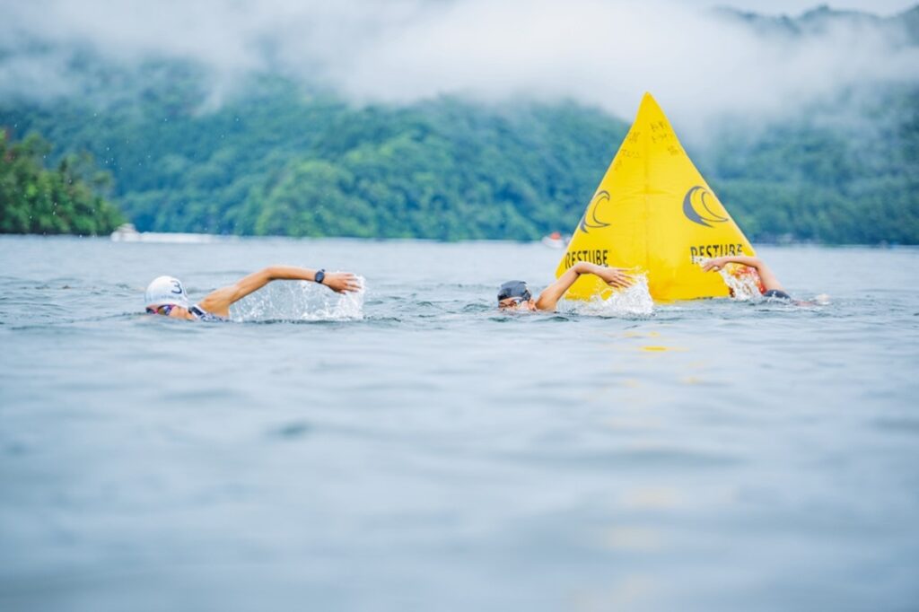 スイムのトレーニングを行った野尻湖は、木島平村からのアクセスが良いのも嬉しいポイント。湖の透明度が高く、サップやカヌーなどのアクティビティ、釣りを楽しんでいる人が多くいる人気のスポットです。